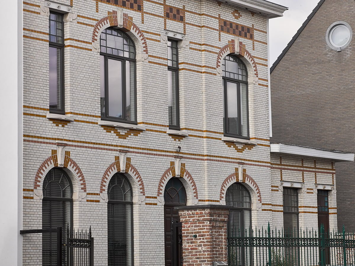 Respectvolle renovatie van een klassiek herenhuis. Met zwarte pvc profielen.
